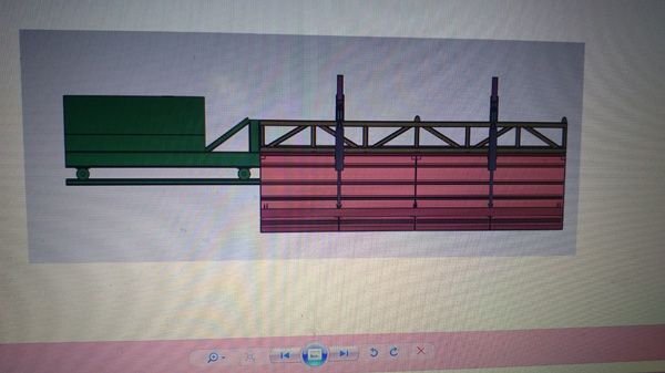 結構∶液壓驅動自行式移動棧橋,主要由前橋、主橋、后橋、前段支架、后段支架、行走驅動裝置、行走支架七個部分組成。