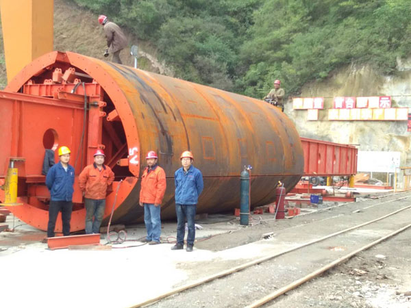 施工方中信重工在2017年7月1日成功完成1號(hào)隧洞的隧洞的線(xiàn)貫通開(kāi)挖工作后,隧洞襯砌施工階段便開(kāi)啟了序幕。在此前兩個(gè)月時(shí)間中信重工便開(kāi)始對(duì)多家臺(tái)車(chē)廠家進(jìn)行實(shí)地考察、方案評(píng)比論證。于6月22日終確定并委托我公司加工制作此新工藝圓襯砌臺(tái)車(chē),經(jīng)過(guò)個(gè)月的技術(shù)交流,制作加工,洛陽(yáng)高飛橋隧機(jī)械有限公司為中信重工制作的新技術(shù)圓襯砌臺(tái)車(chē)下線(xiàn)了。