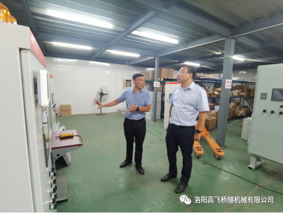 “問需于企,助企紓困?!睘榱藘A聽企業(yè)心聲,找準突出困難問題,助力企業(yè)紓困解難。2022年9月23日西工區(qū)區(qū)委組織部部長王加祥、區(qū)委組織部辦公室主任劉國斌、紅山街道辦事處主任邢斐一行到洛陽高飛橋隧機械有限公司走訪調研,公司董事長黃高飛陪同介紹公司近況。